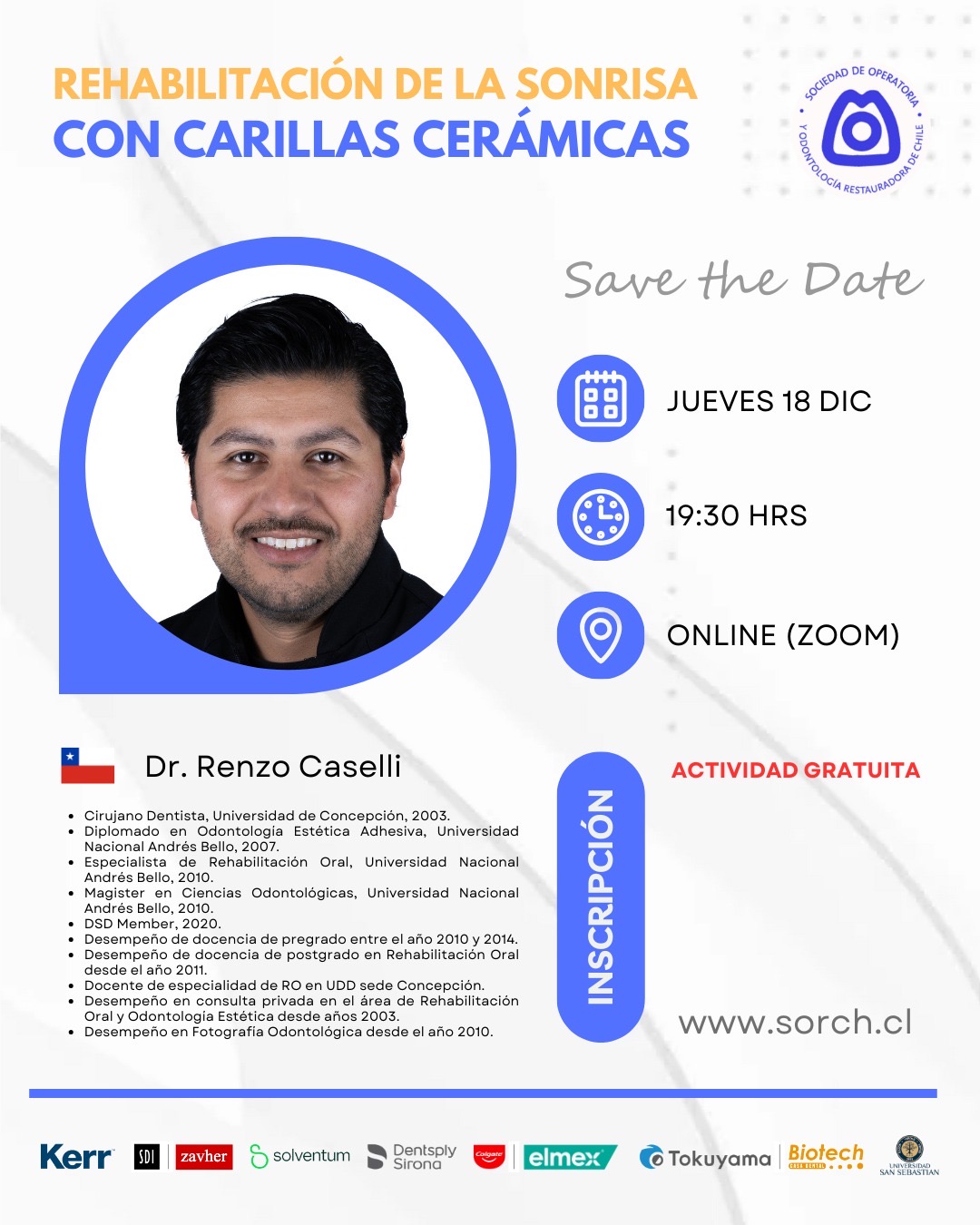 Con la finalidad de poder proteger su salud y la de todos, manteniendo nuestro compromiso con la actualización en el área de la Odontología Restauradora de Chile, hemos desarrollado un portal en línea para mantener la comunicación y el contacto con la comunidad interesada en esta área.